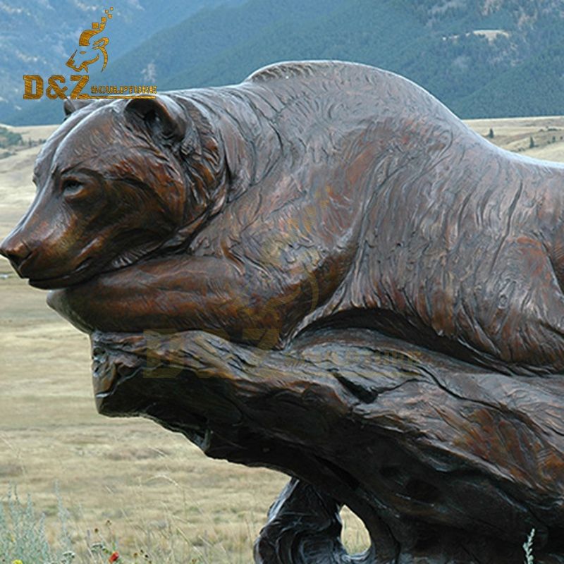 This is a bear sculpture lying on a rock, with its head placed under a paw, lying there quietly, looking into the distance. It looks like a real bear. The bear is a very ferocious animal in the eyes of people, but this bear sculpture is unusually quiet and beautiful and looks cuter. Our sculptures are all handmade, high quality, durable, and long-lasting.