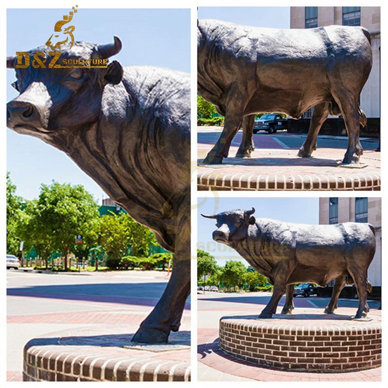 This is a standing brass cow sculpture. Many customers like bull sculptures, which are said to bring good luck. This cow sculpture is a good choice to put on the farm or on the street. It is made very realistic, very strong, corrosion-resistant, and not easy to rust. Of course, you can also customize your favorite sculptures. Each sculpture is made of high-quality metal materials, and the copper content can reach more than 80%. If you want to know more details, you can send us an email.