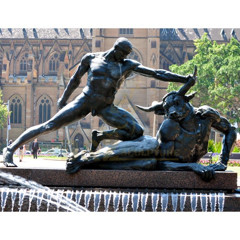 Large Outdoor Bronze Bull Sculpture Of Roman Nude Man