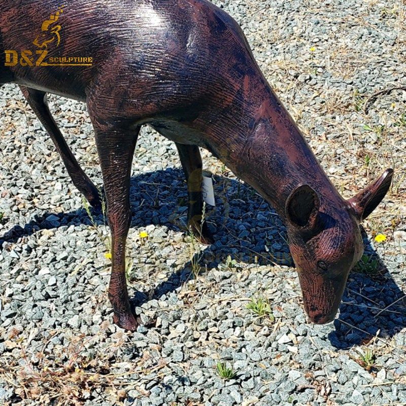 outdoor metal animal sculpture bronze grazing doe statue for garden decor
