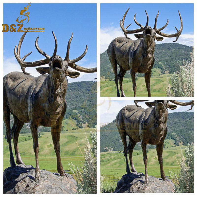 The howling elk sculpture standing on the stone is very beautiful. Modern garden bronze elk statues are very popular and we can often see them. Many people decorate their yards with bronze garden deer on Christmas, adding a lot of festive atmospheres. In addition to this outdoor elk sculpture, we also have Christmas reindeer sculptures, garden deer sculptures, stag sculptures, etc. Of course, we can also customize it according to your needs. If you need it, please email us to customize it.