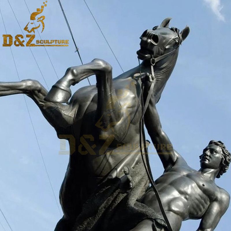 This is a famous statue of a horse tamer. You can see the upper body of the horse statue standing upright, looking up to the sky and howling, the horse mane raised high, trying to break free from the reins of the horse trainer. This famous horse statue must be very attractive everywhere. D&Z animal sculptures have many famous sculptures, as well as their own sculptures. If you want to know more about bronze horse sculptures or animal sculptures, you can contact us for more detailed information.