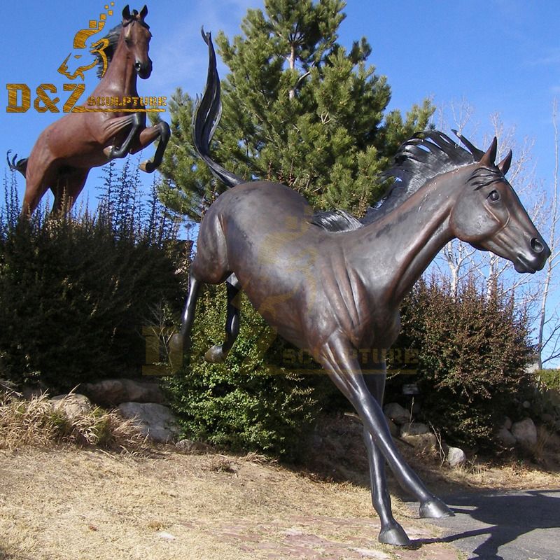Looking at this picture, two horses are running and chasing one after the other. The sculpture artist has fixed this dynamic picture forever at this moment. The brass running horse sculpture is very cleverly designed. We also have more designs of horse sculptures, running horse sculptures, life-size horse head sculptures, jumping horse sculptures, standing horse sculptures. Of course, we can also customize according to your design, regardless of size or color. You can send an email to us to get detailed sculpture information.