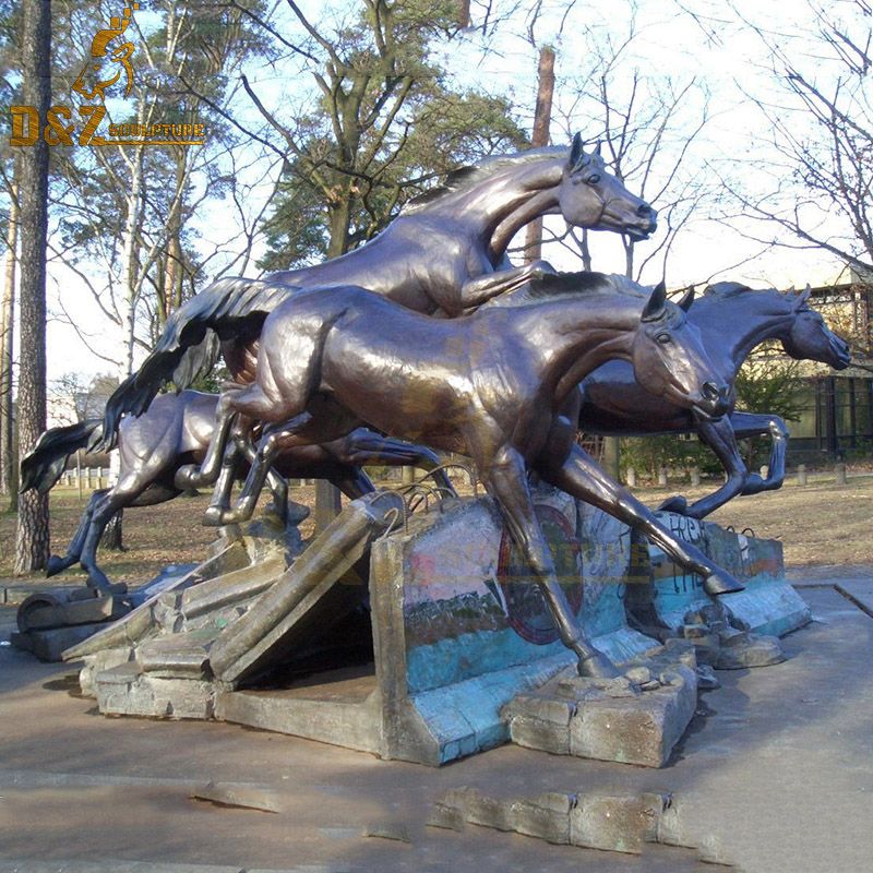 Outdoor garden sculpture bronze group of horses running statue for sale